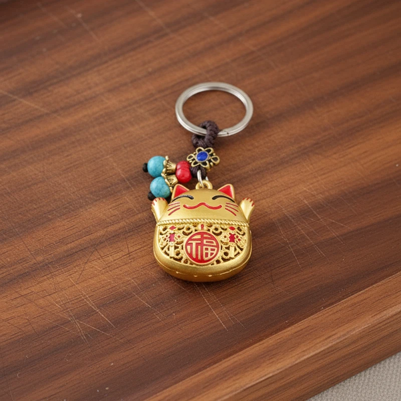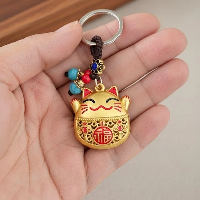 🔑 Llavero Maneki-Neko de la Fortuna Premium (Venta Mayorista) ✨ Descripción del Producto Este encantador llavero captura la esencia de la buena suerte y la prosperidad con el icónico diseño del Maneki-Neko o Gato de la Suerte Japonés. Elaborado con una aleación metálica de alta calidad con un acabado dorado brillante, presenta un diseño intrincado que incluye el ideograma chino de la "Fortuna" (福, fú). Es un artículo de regalo perfecto para atraer la suerte, la riqueza y los clientes.
