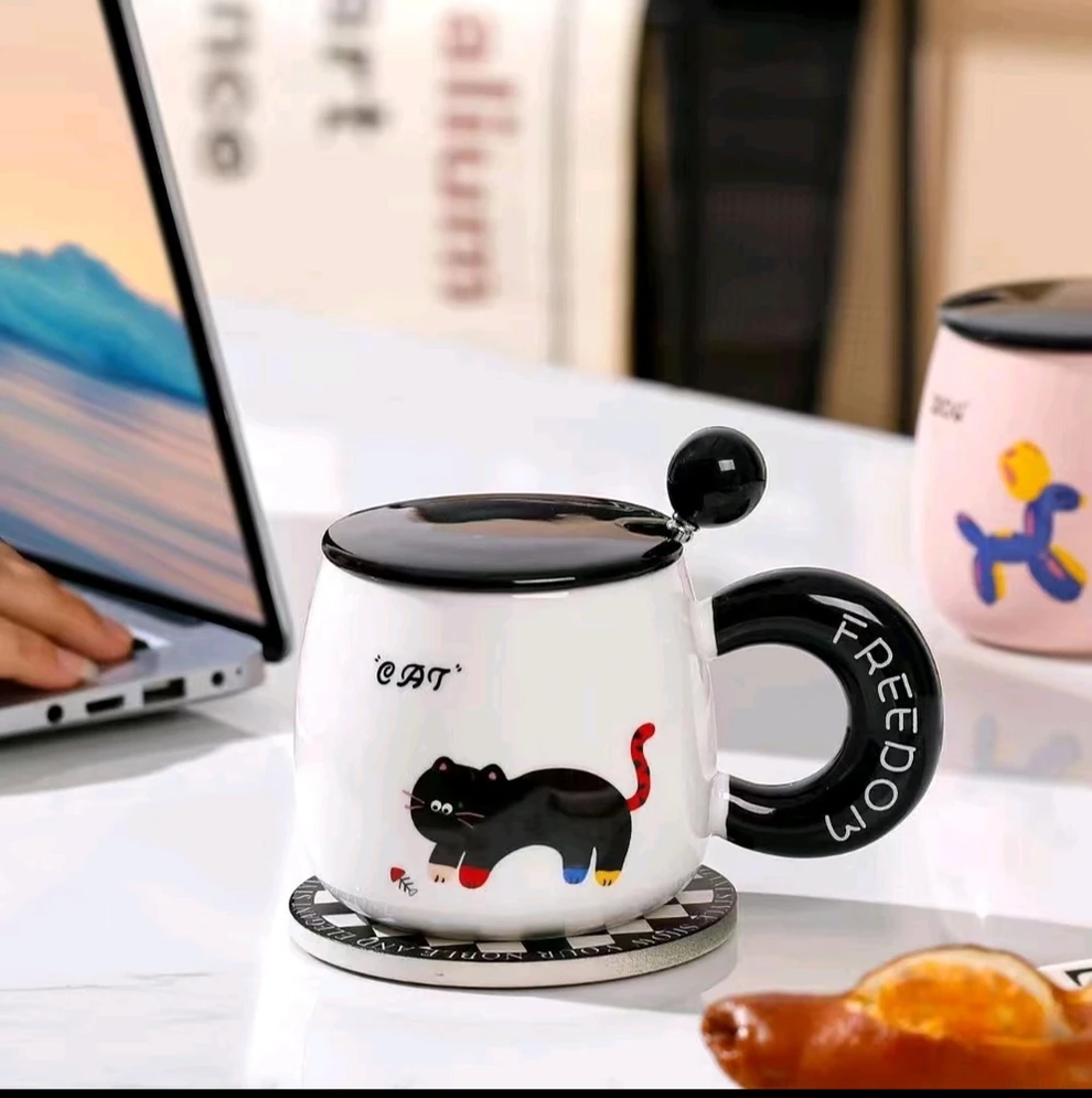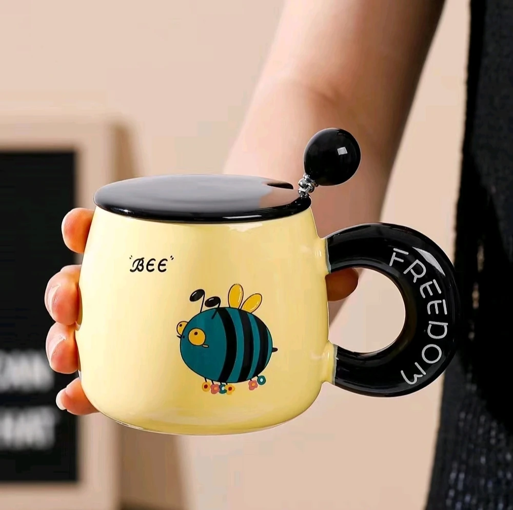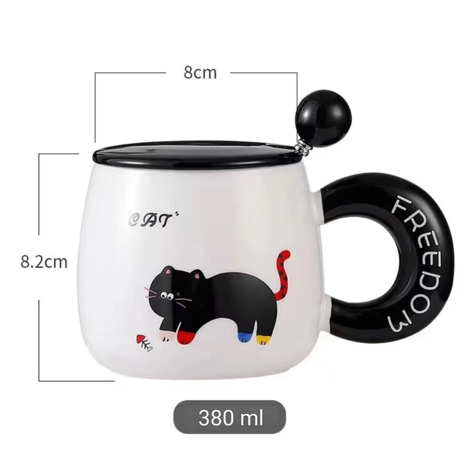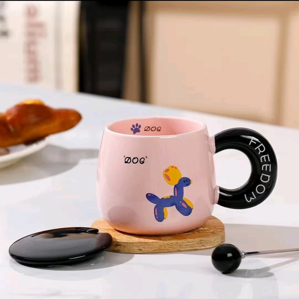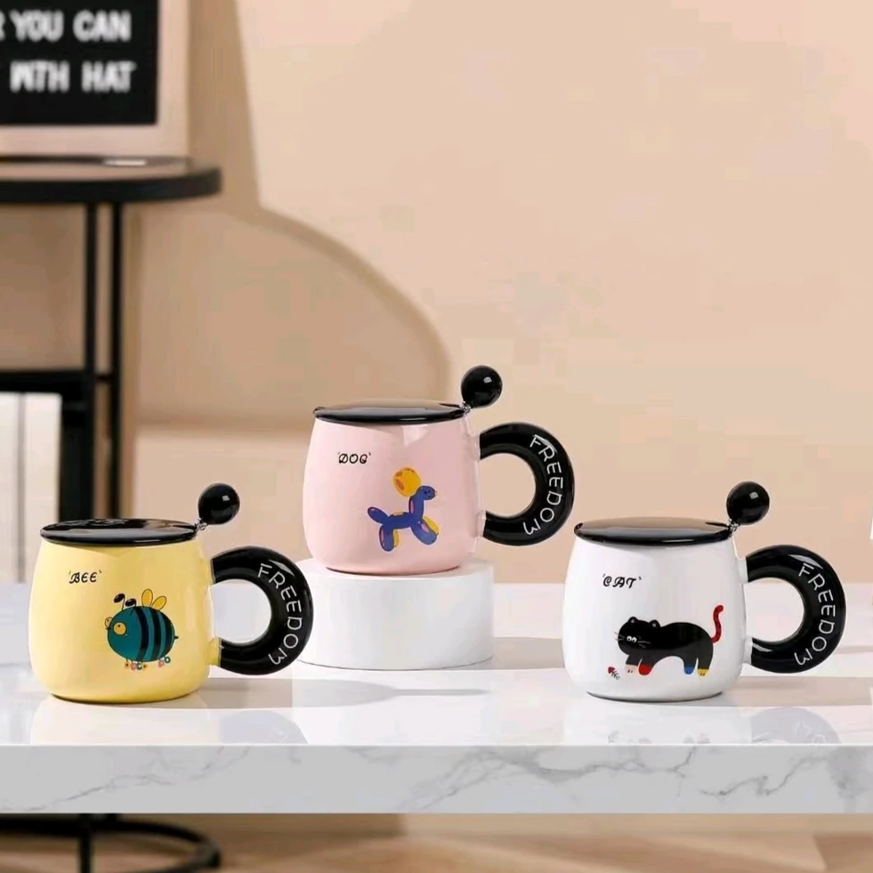 Taza de cerámica esmaltada con capacidad de 380 ml, ideal para bebidas calientes o frías. Su diseño presenta ilustraciones de animales con estilo moderno y colores suaves, aportando un acabado decorativo y atractivo para el uso diario.