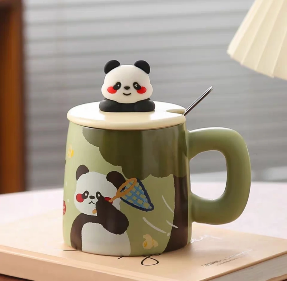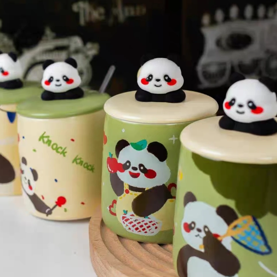 Taza de cerámica esmaltada con ilustraciones de panda en un estilo tierno y encantador que llama la atención a primera vista. Disponible en cuatro diseños diferentes, cada uno con expresiones adorables y detalles coloridos que la hacen especialmente linda y atractiva para cualquier espacio.