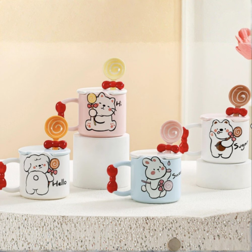 Taza de ceramica diseño de animales con cuchara en forma de chupetin
