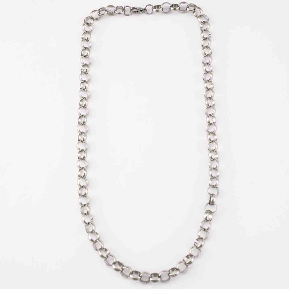 Cadena de acero quirúrgico con eslabones redondos, pareja y prolija. Tiene un largo de 60 cm, ideal para usar sola o con dijes medianos y grandes.