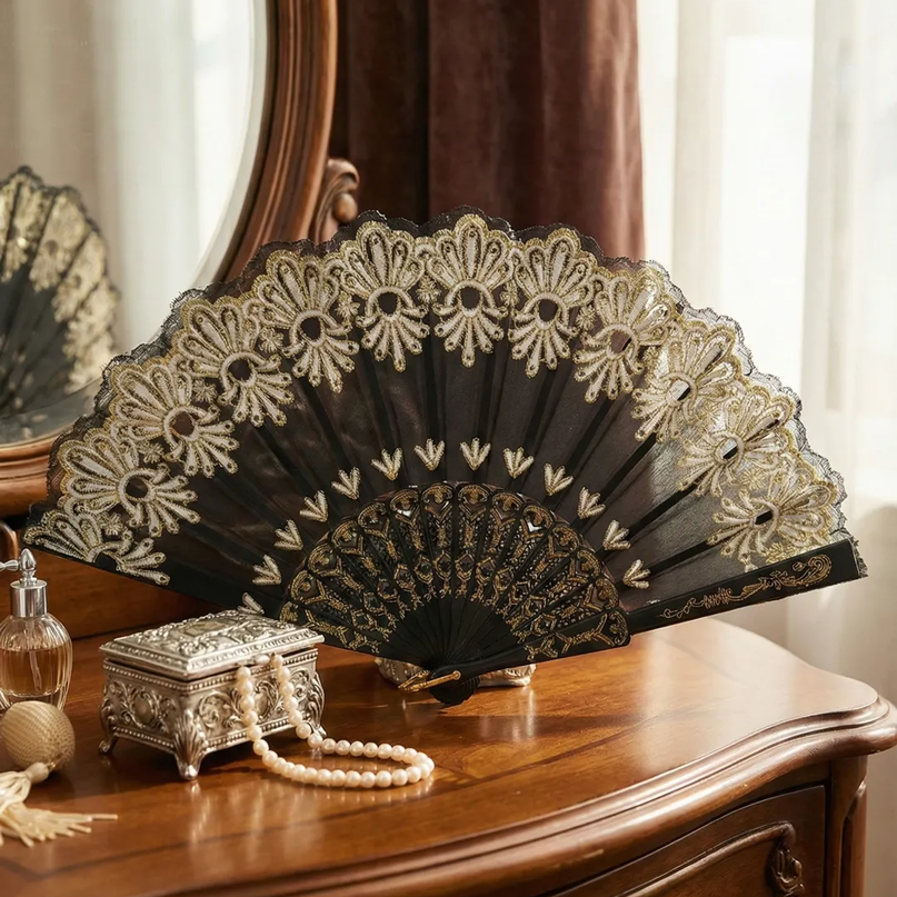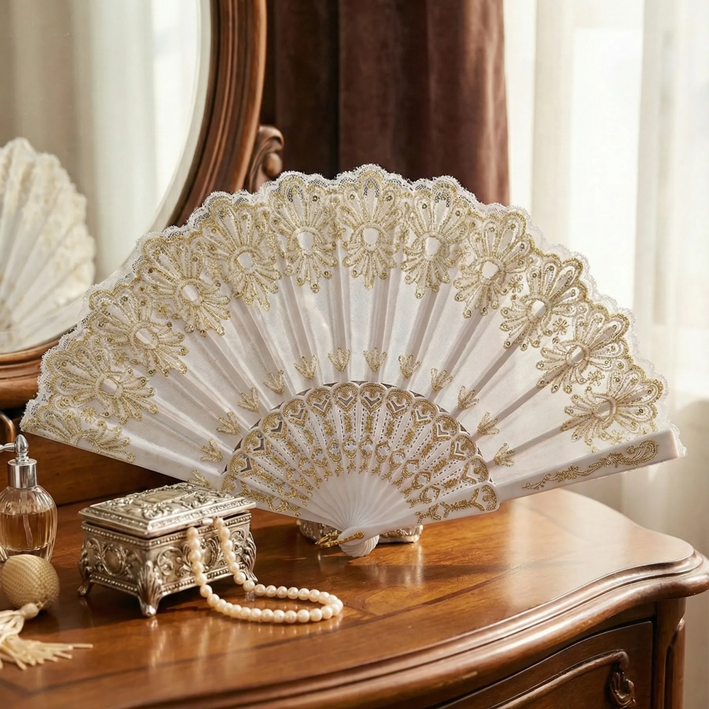 Abanicos Decorativos Bordados Premium – Estilo Clásico Elegante