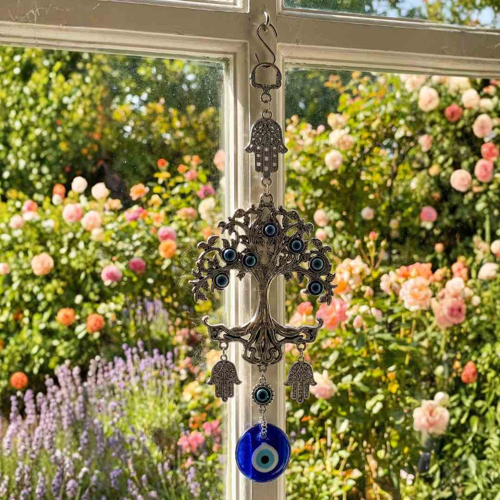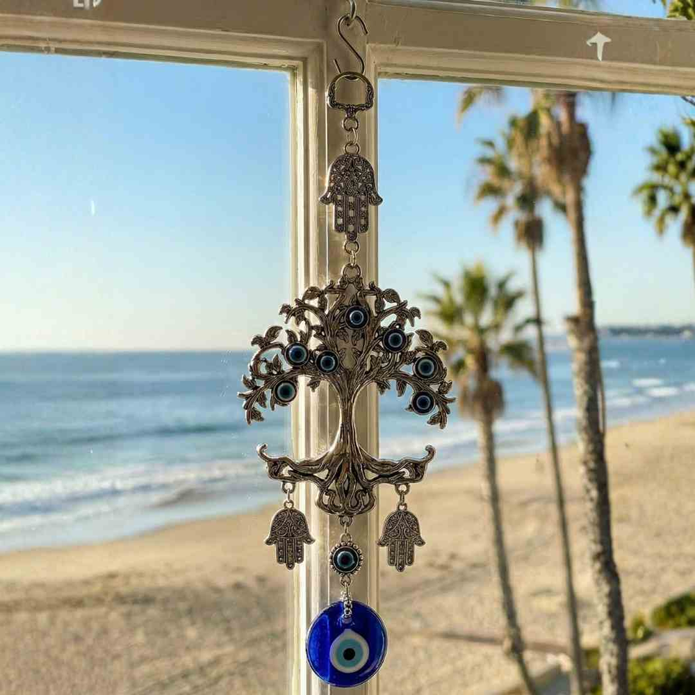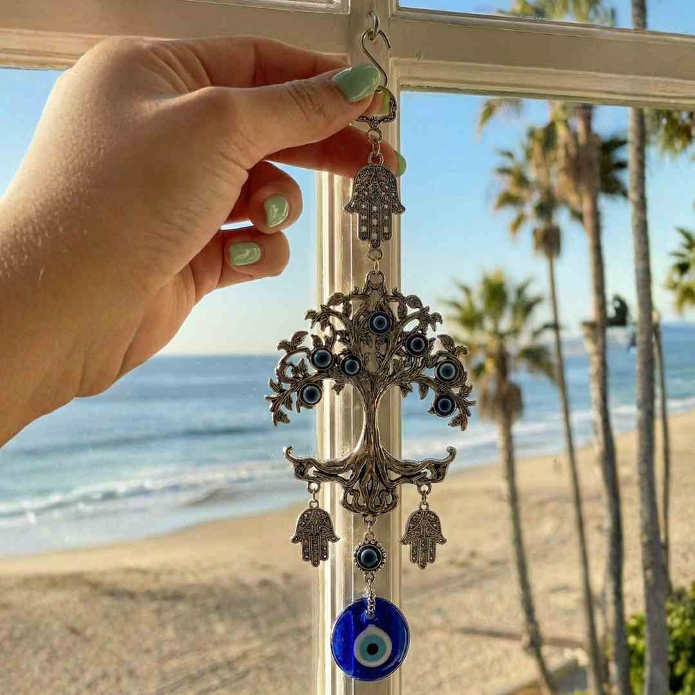 Sumá protección, equilibrio y un fuerte valor simbólico con este Colgante Árbol de la Vida con Ojo Turco, una pieza decorativa que combina espiritualidad y diseño elegante. Ideal para colgar en ventanas, puertas, paredes o espacios de trabajo, aportando energía positiva y un toque distintivo al ambiente.