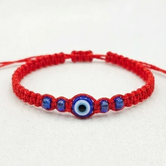 Esta pulsera trenzada roja con ojo turco es un accesorio clásico que nunca pasa de moda. Su diseño artesanal, con hilo rojo resistente y detalle central de ojo turco, combina significado, estilo y tendencia en una sola pieza. Ideal para quienes buscan un amuleto de protección sin resignar estética, es un producto de alta rotación en tiendas mayoristas y ferias.