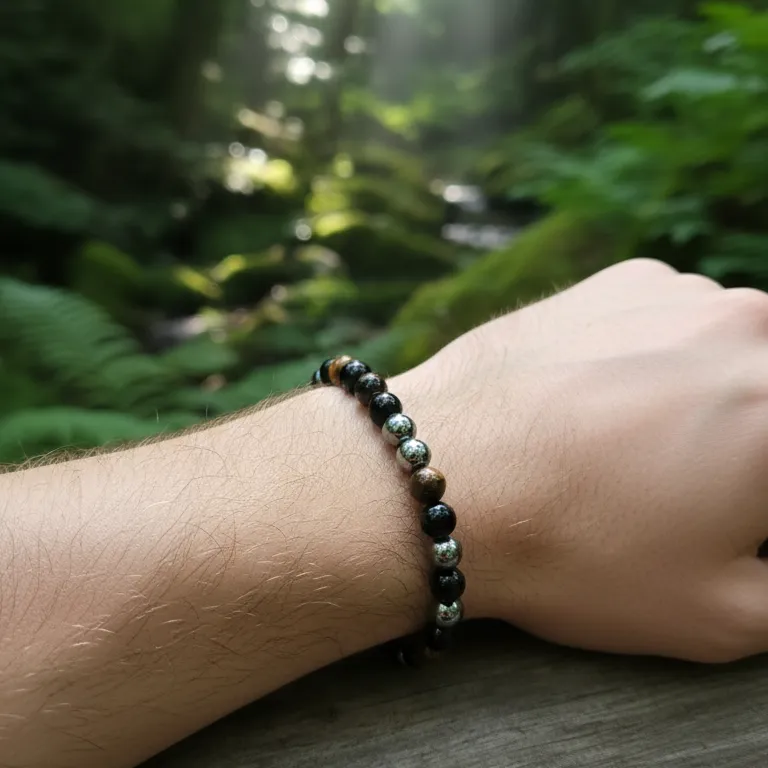 Esta pulsera combina elegancia natural y estilo moderno, ideal para quienes buscan un accesorio versátil que se adapte tanto a looks casuales como formales. La mezcla de ónix negro, hematite y ágata símil ojo de tigre crea un diseño sobrio, masculino y muy atractivo a la vista, tal como se aprecia en la imagen.