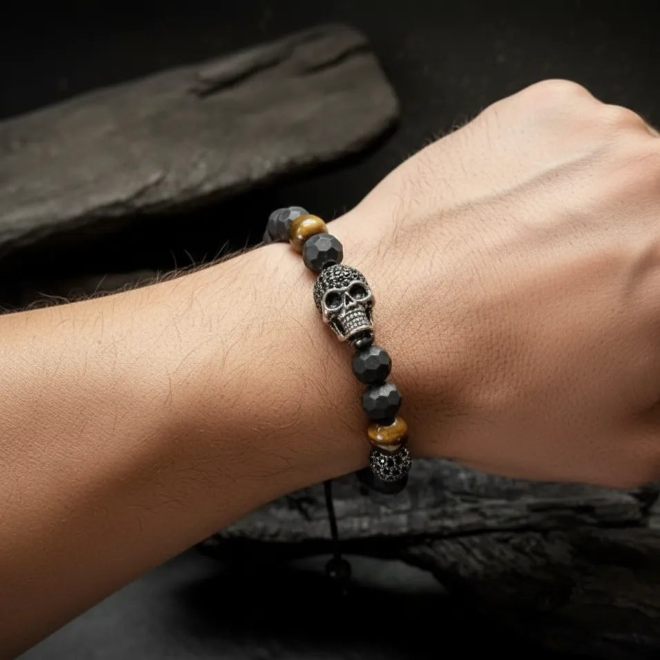 Esta pulsera se destaca por su diseño elegante y sofisticado, ideal para clientes que buscan un accesorio con personalidad. Las cuentas de ónix facetado aportan un brillo sutil y un acabado premium, mientras que el dije metálico central suma un detalle distintivo que eleva el estilo del conjunto.