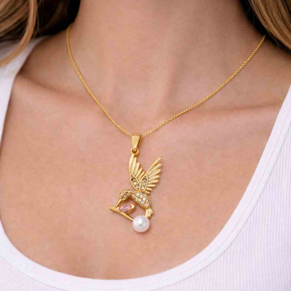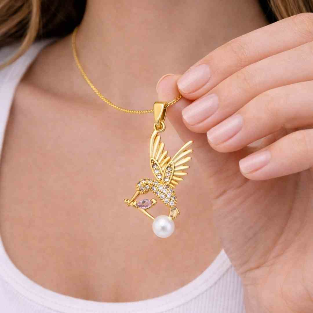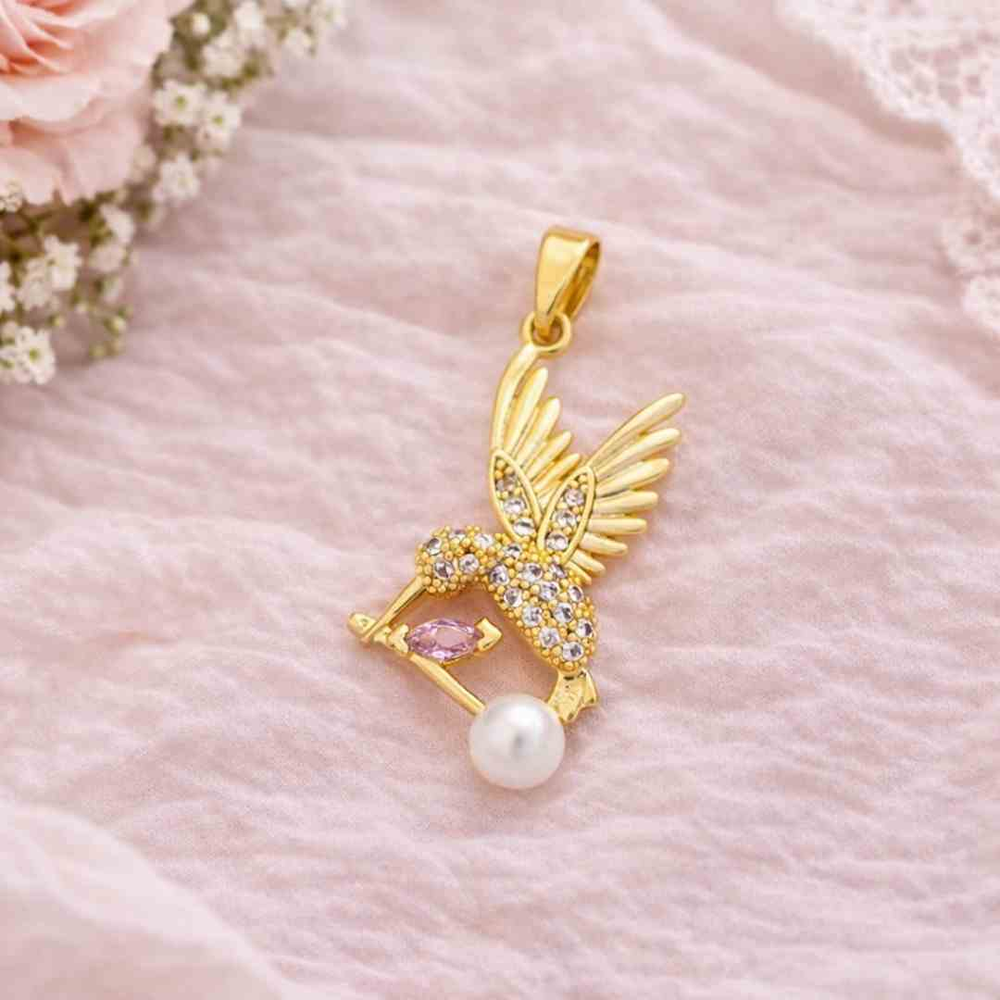 🕊️ Dije Colibrí Dorado con Perla Un accesorio que transmite belleza, significado y ventas aseguradas.