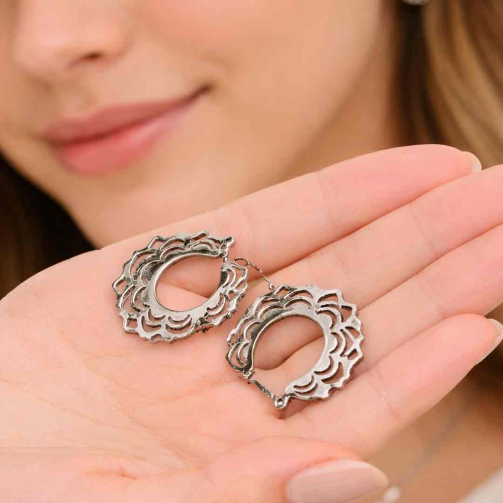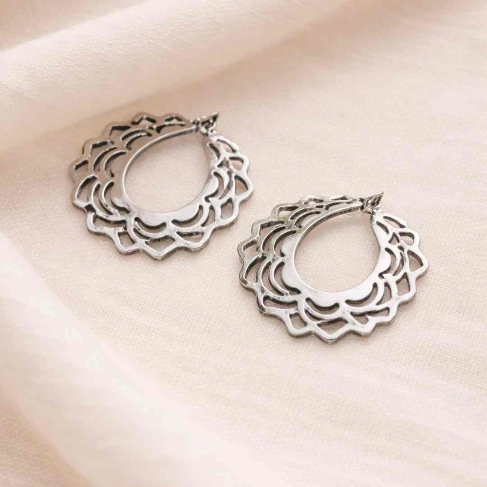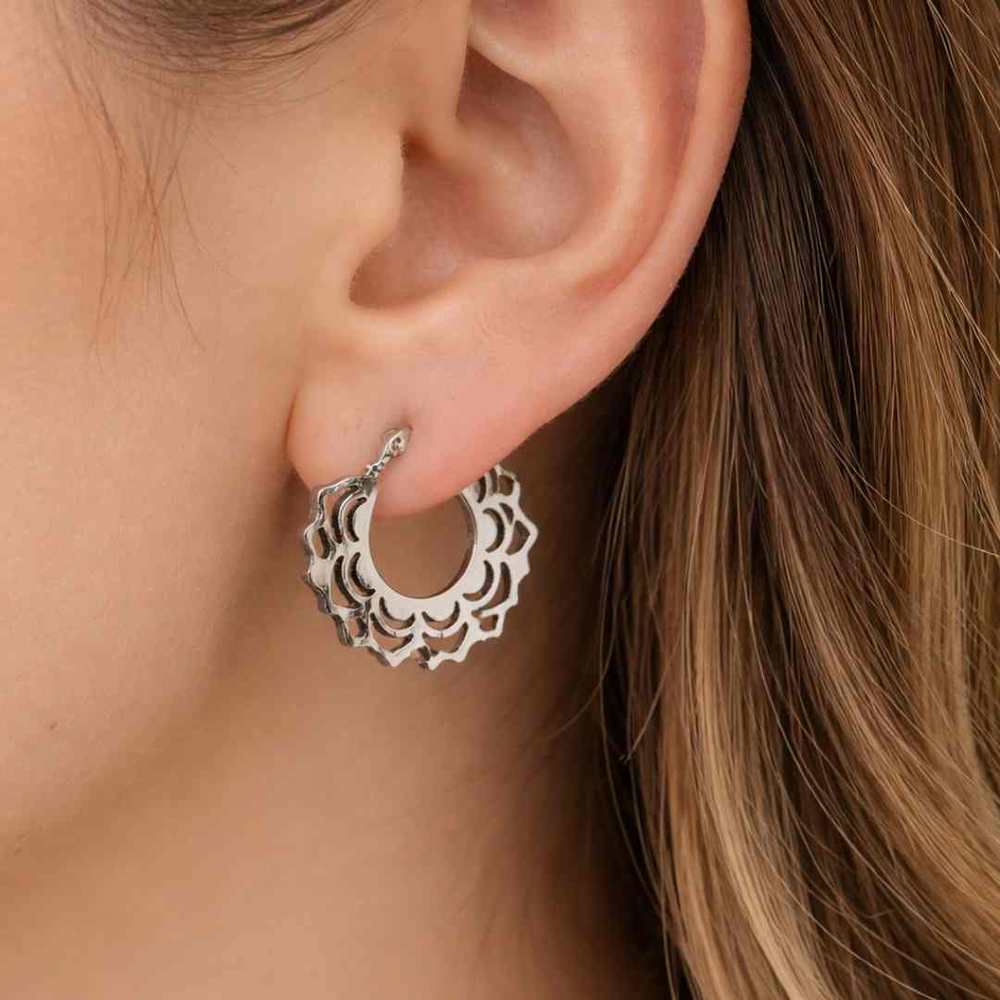 Estos aritos de mandala en acero combinan un diseño calado elegante con la resistencia y durabilidad que buscan las compradoras de hoy. Su acabado plateado aporta un look moderno y sofisticado, ideal para quienes prefieren accesorios versátiles que acompañen cualquier outfit, de día o de noche.