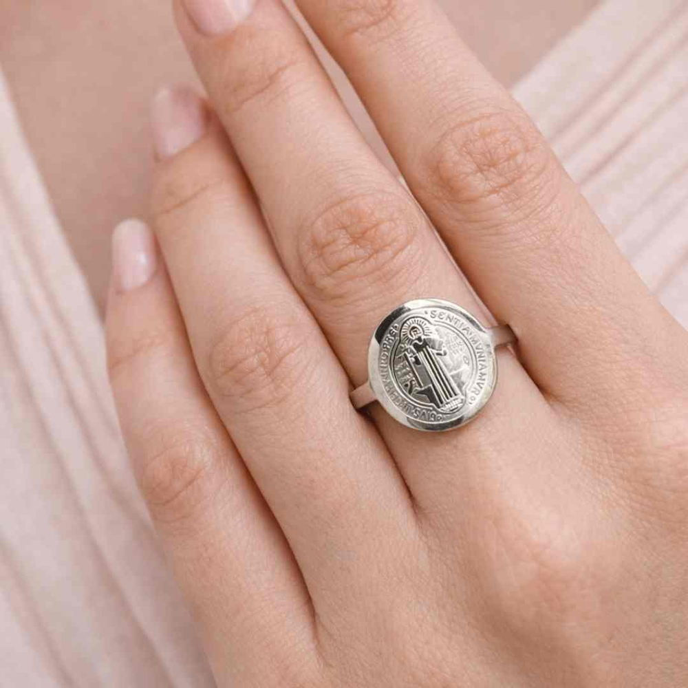 Anillo San Benito de Acero Quirúrgico – Protección y Claridad en el Detalle