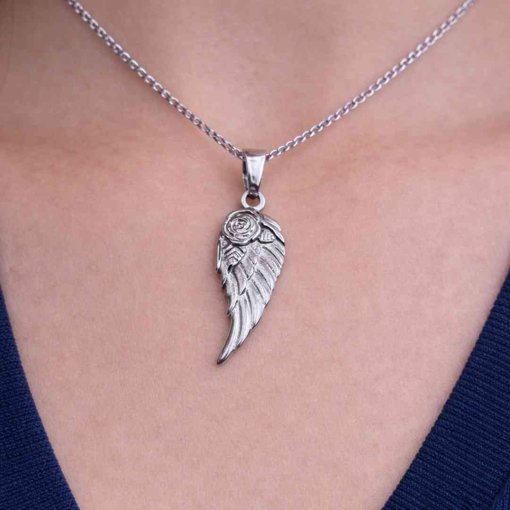 Elegante y con fuerte carga simbólica, este dije en forma de ala representa protección, libertad y fortaleza. Su diseño detallado con relieves marcados le da un estilo moderno y versátil, ideal para quienes buscan un accesorio con significado y personalidad.
