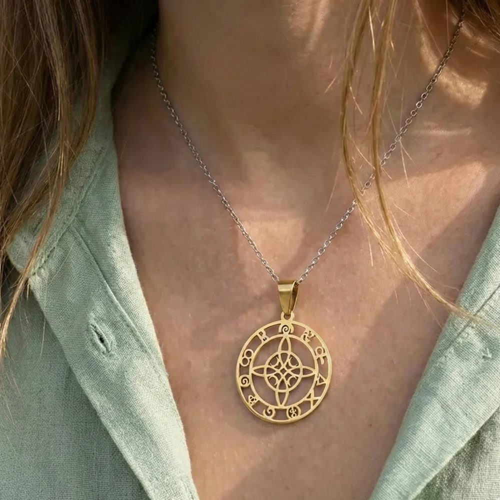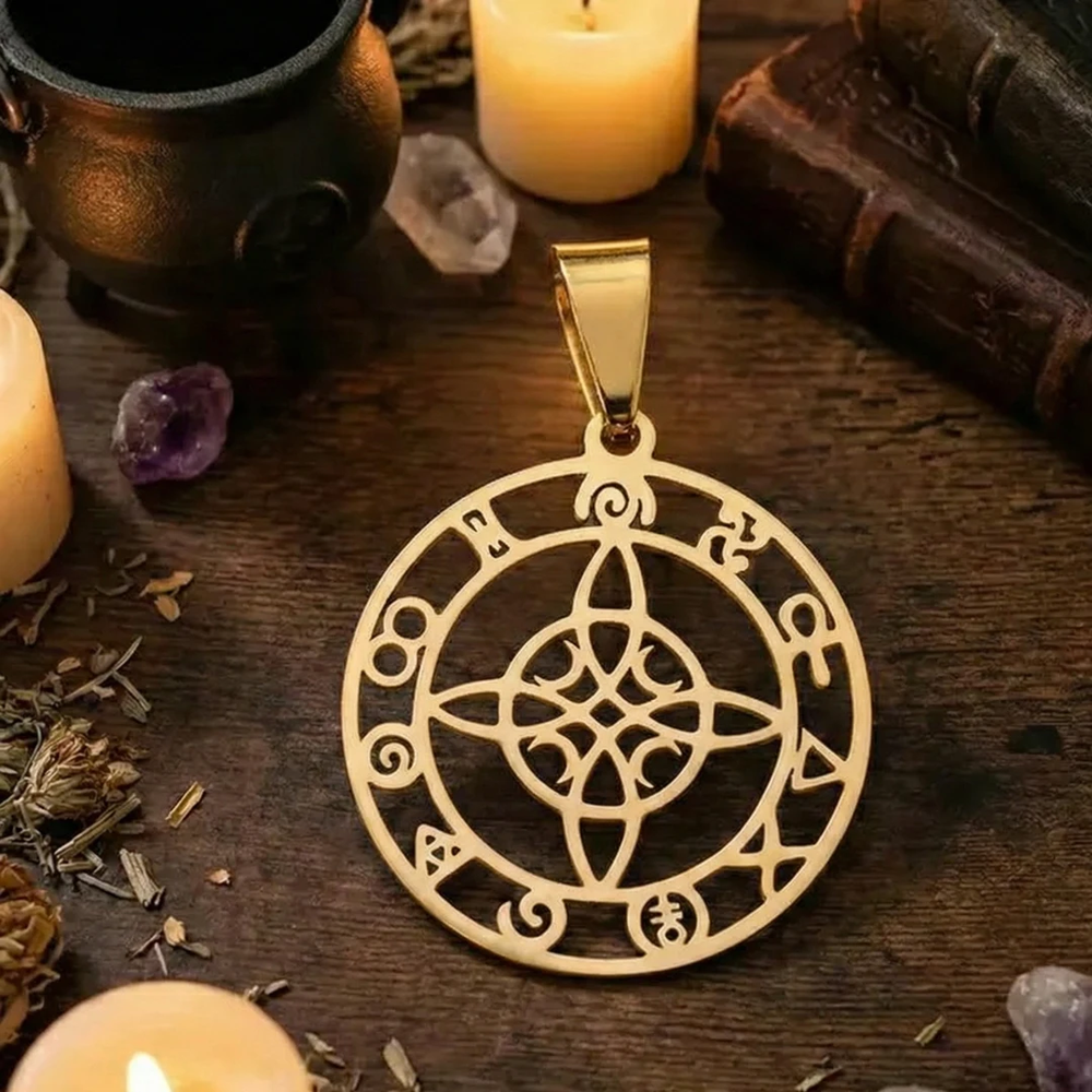 Dije Nudo de Bruja con Símbolos – Protección y Energía en dorado