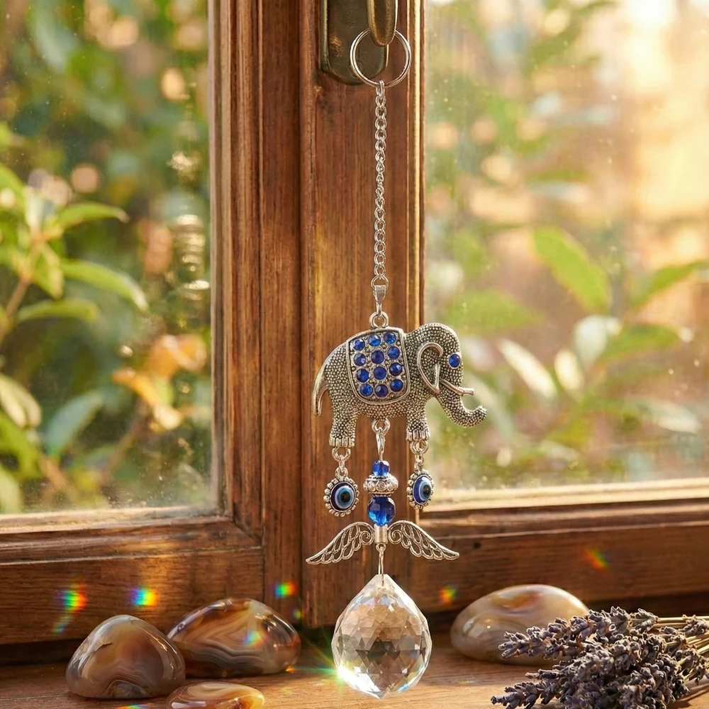 ✨ Atrapa Sol Colgante Elefante con Cristal Facetado ✨