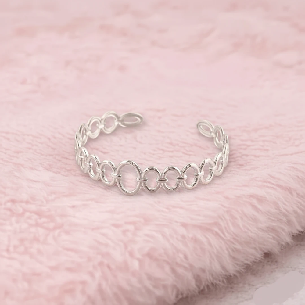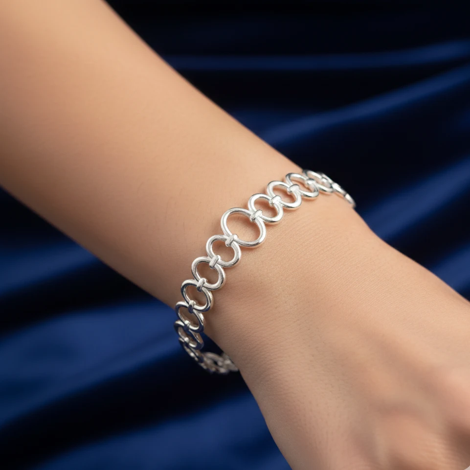 Esta pulsera esclava de acero inoxidable destaca por su diseño de ovalos y terminaciones delicadas, ideal para quienes buscan un accesorio elegante, moderno y fácil de combinar. Su formato rígido le da presencia en la muñeca, convirtiéndola en una pieza atractiva para el uso diario o para ocasiones especiales.