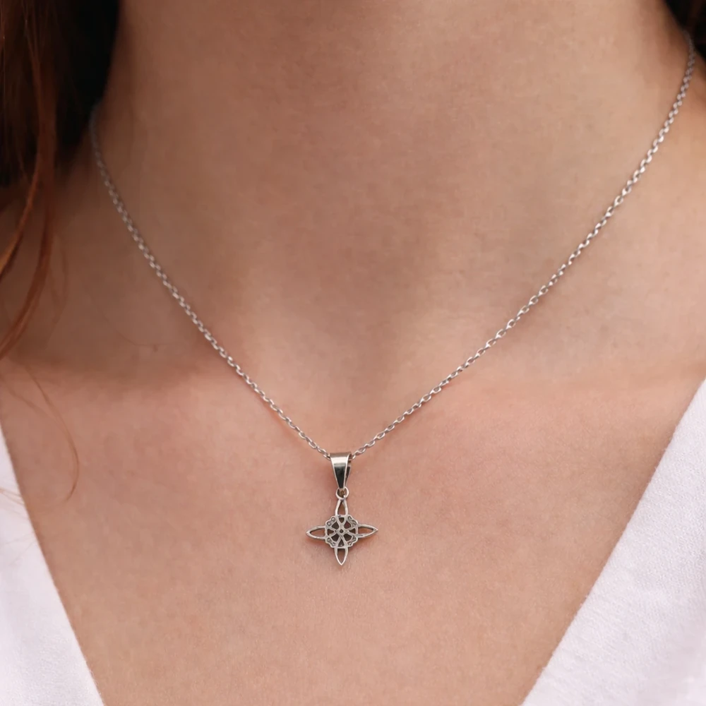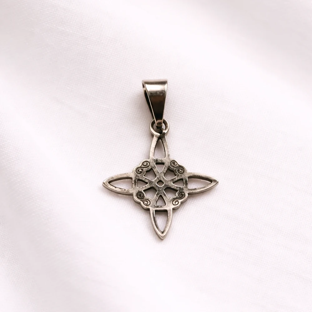 Dije con diseño Nudo de Bruja, símbolo de protección y energía. Terminación plateada, delicado y con excelente nivel de detalle. Un accesorio versátil, fácil de combinar y con muy buena salida comercial. Ideal para uso diario o para regalar.