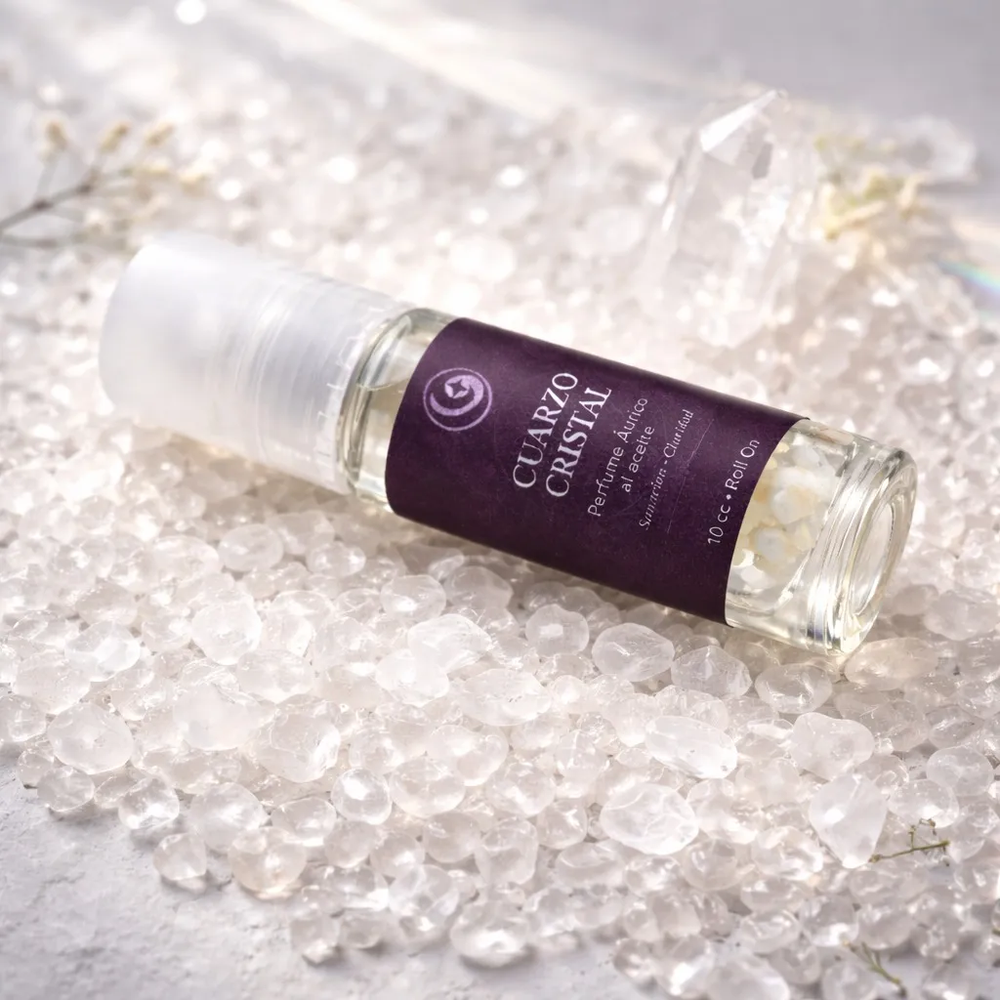 Su fórmula incorpora cuarzo cristal natural, piedra reconocida por su capacidad de amplificar la energía, aportar claridad y potenciar la intención en el trabajo energético cotidiano.