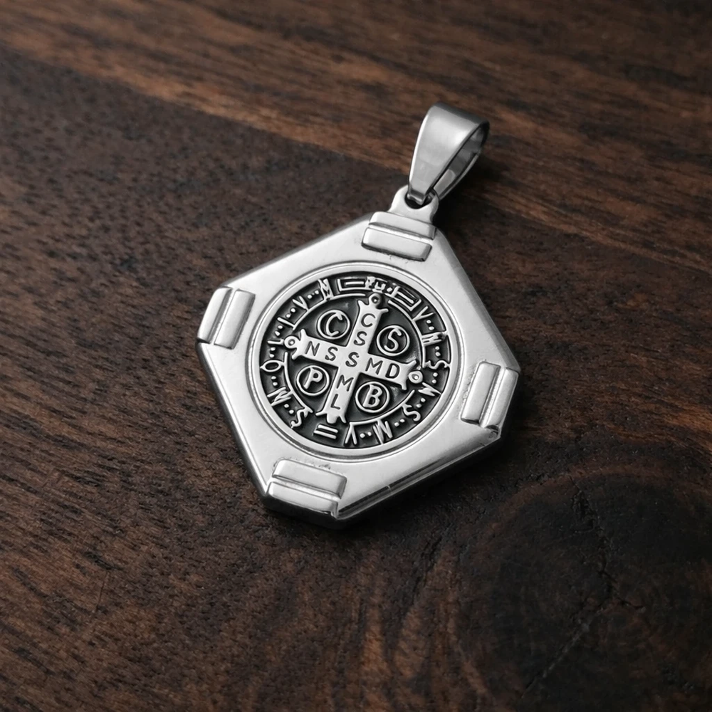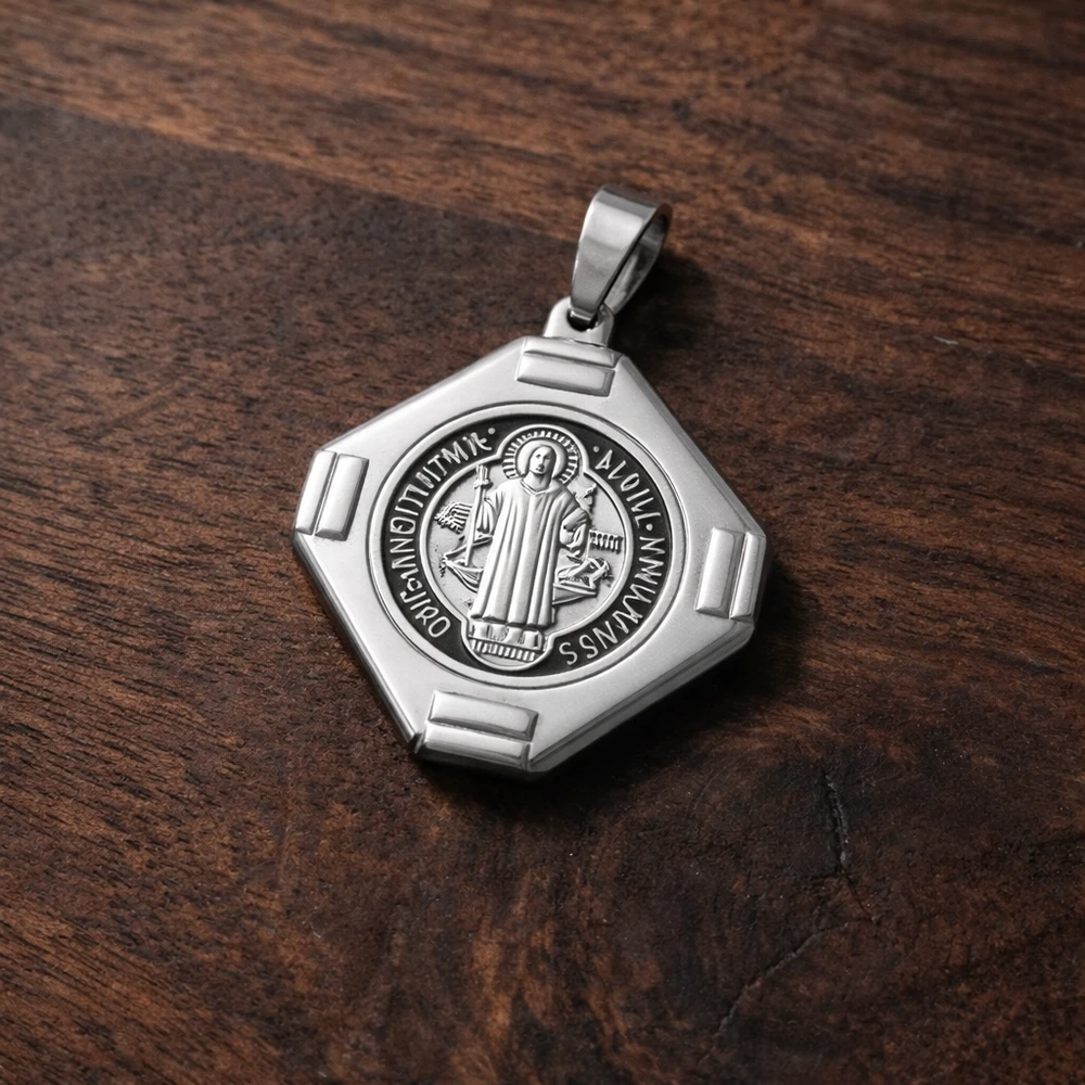 ✨ Medalla Doble de San Benito en Acero Plateado ✨