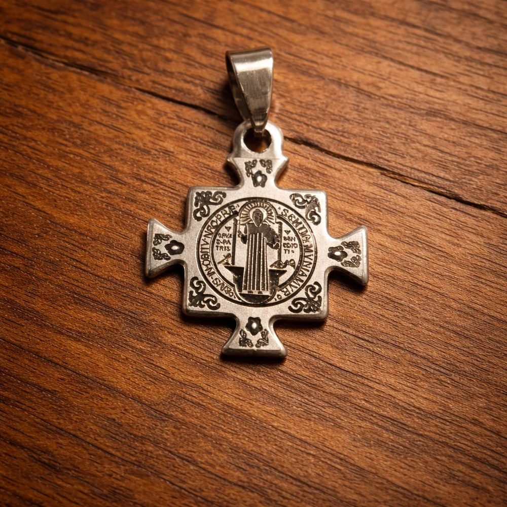 Dije Cruz San Benito Grabada – Protección, fe y calidad superior
