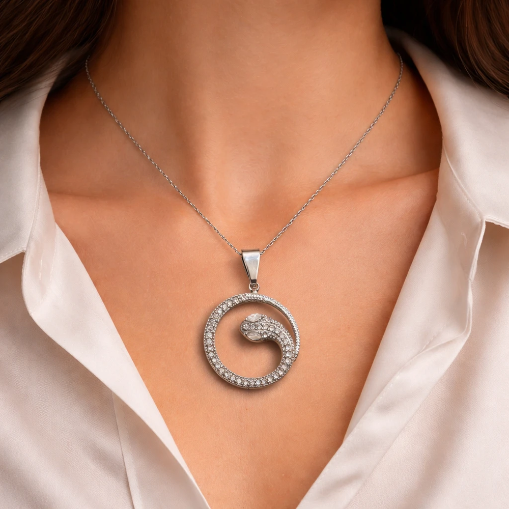 Descubrí una pieza única que combina elegancia y simbolismo en un solo accesorio. Este dije de serpiente en forma circular representa renovación, protección y poder, ideal para quienes buscan destacar con un estilo sofisticado y con significado. Su diseño delicado, cubierto de brillantes strass, aporta un brillo sutil pero cautivador que eleva cualquier look.