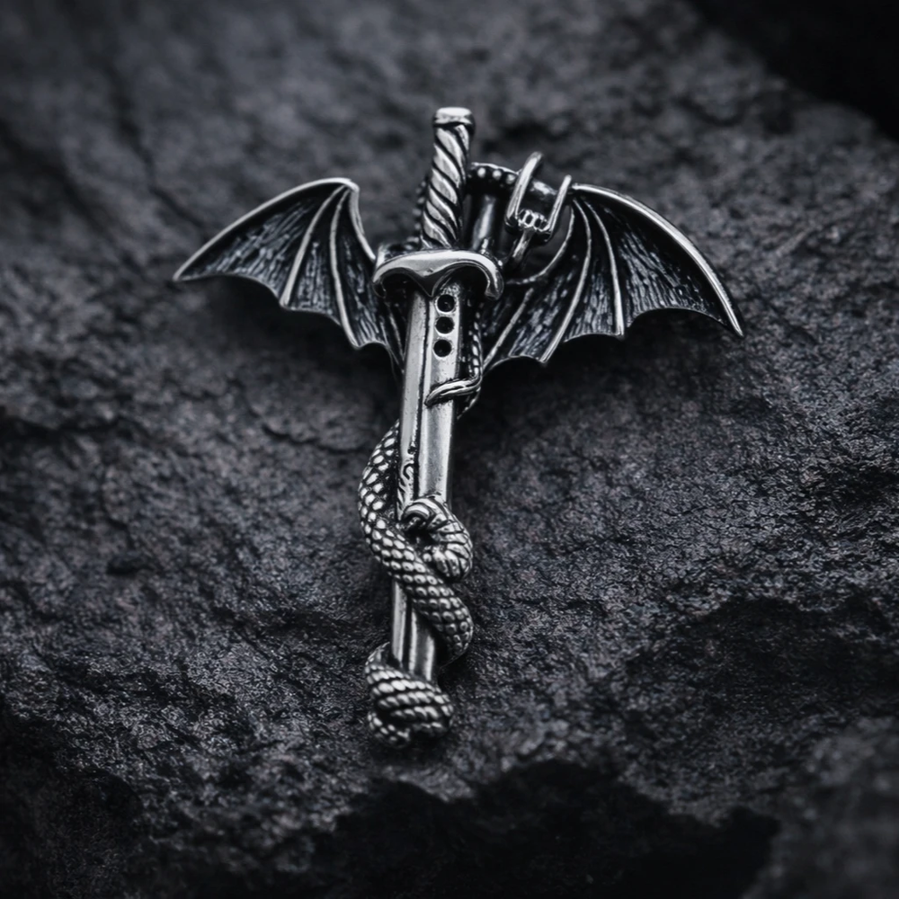 Marcá diferencia con este dije de dragón enroscado en espada, una pieza que combina actitud, simbolismo y un diseño impactante. Su estética detallada y oscura lo convierte en un accesorio ideal para quienes buscan destacar con un estilo fuerte y auténtico.