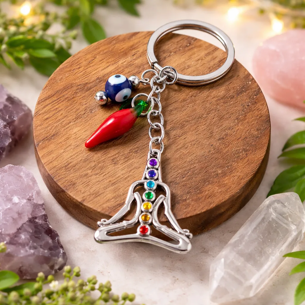 Llavero Mujer 7 Chakras con Ají y Ojo Turco 🌶️🧿✨