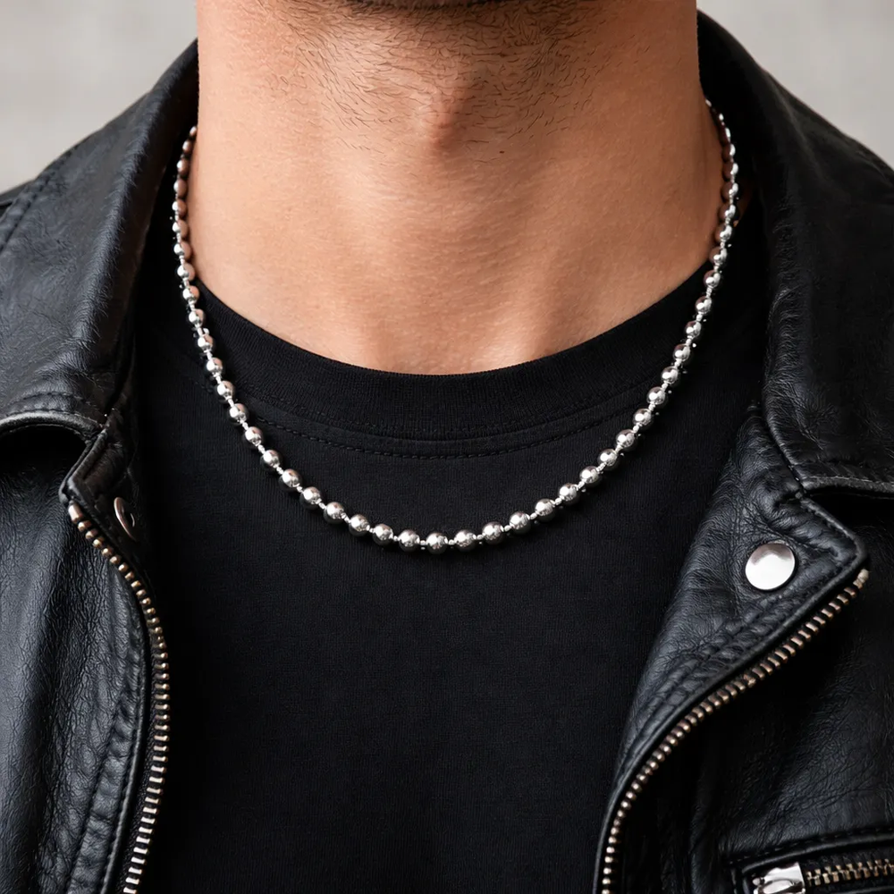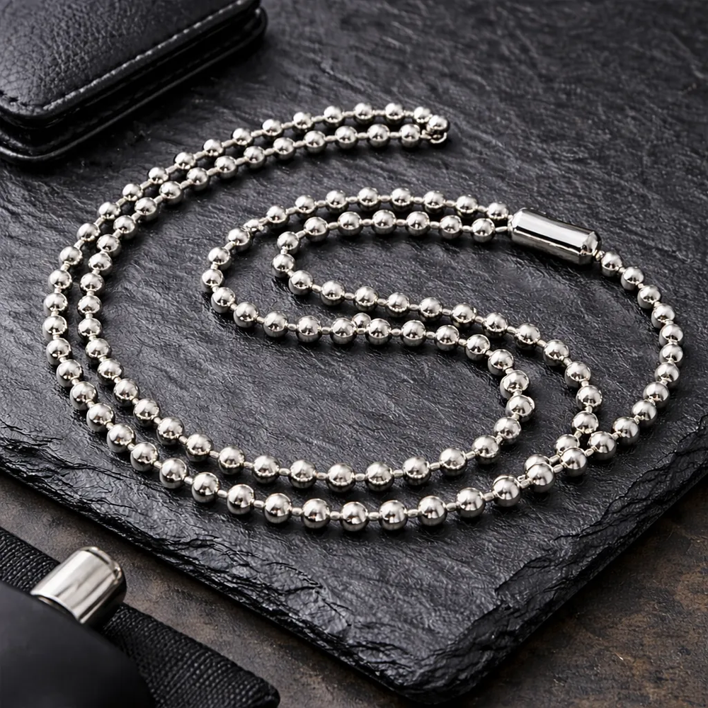 Sumá un detalle clásico, versátil y siempre vigente con esta cadena de acero de bolitas en color plateado. Su diseño simple y moderno la convierte en una excelente opción para complementar dijes, amuletos o usar sola, logrando un look limpio y canchero para todos los días.