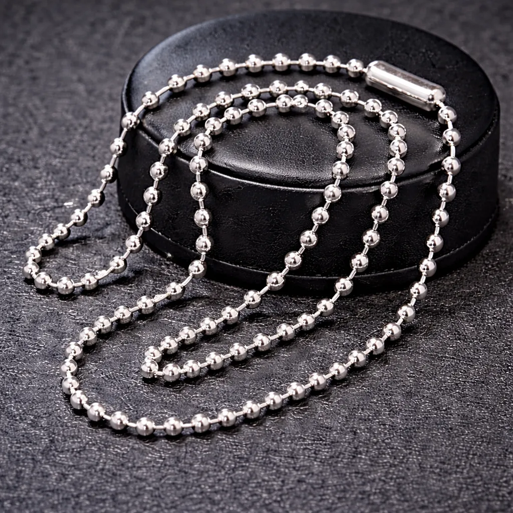 Sumá un detalle clásico, versátil y siempre vigente con esta cadena de acero de bolitas en color plateado. Su diseño simple y moderno la convierte en una excelente opción para complementar dijes, amuletos o usar sola, logrando un look limpio y canchero para todos los días.