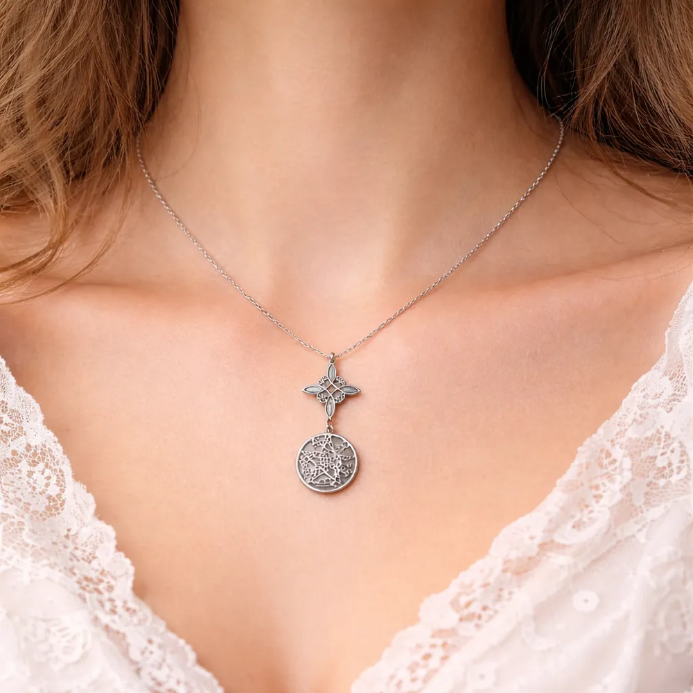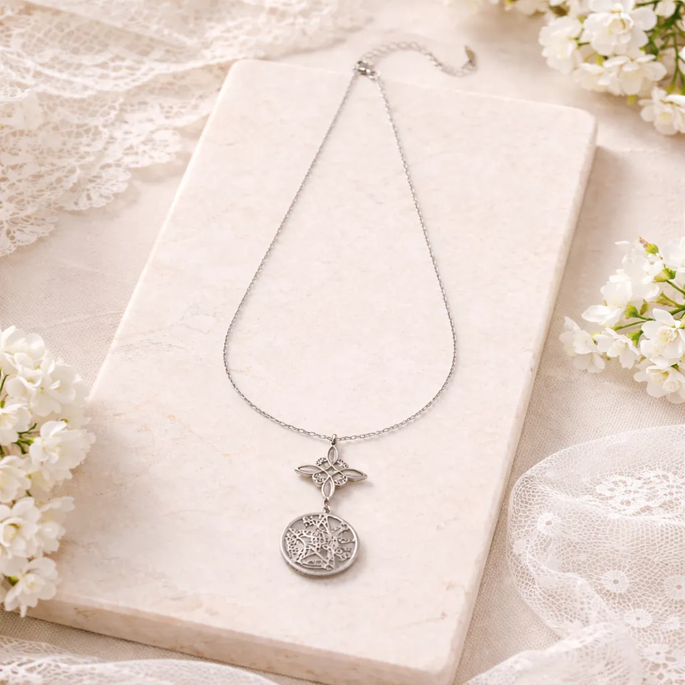 Su acabado en tono plateado aporta elegancia y versatilidad, permitiéndote usarla tanto en ocasiones especiales como en tu rutina diaria. Es una joya que destaca por su significado profundo y su estética minimalista, perfecta para quienes valoran lo espiritual sin dejar de lado el estilo.