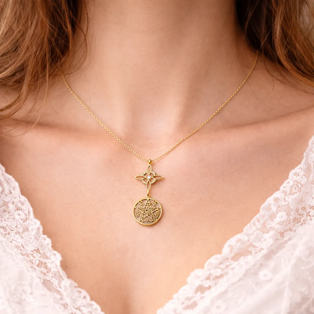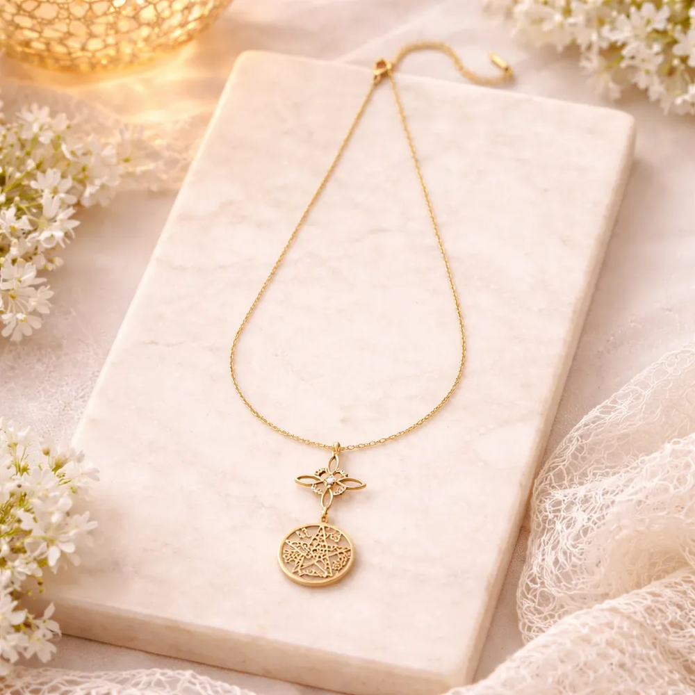 Elevá tu energía y protegé tu esencia con esta delicada y poderosa cadena de diseño simbólico. Su combinación del Nudo de Bruja y el Tetragramatón crea una pieza única que no solo embellece, sino que también actúa como amuleto de protección espiritual, ideal para quienes buscan equilibrio, conexión y resguardo energético en su día a día.