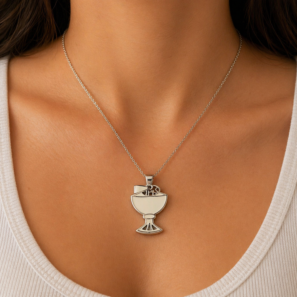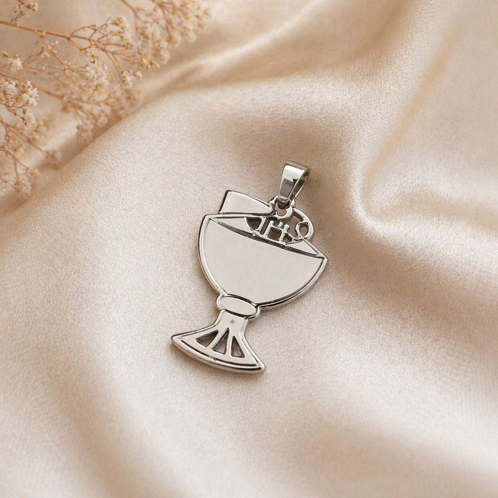Dije con diseño de cáliz y hostia (IHS)